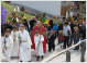 Nach der Segnung zogen die Ministranten mit dem Pfarrer und in der Gefolgschaft der Kinder und den Eltern sowie den übrigen Prozessionsteilnehmern in die Pfarrkirche ein. Die Prozession und auch die Eucharistiefeier boten ein sehr buntes und lebendiges Bild der Freude. Musikalisch wurde die Eucharistiefeier vom Chor der Hauptschüler unter der Leitung von der Ursula und der Ingeborg gestaltet. In der Predigt wies unser Pfarrer auf die Schönheit der Palmlatten hin, die aber, wenn sie umgedreht werden, zu einem gefährlichen Schlagstock werden können.